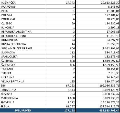 Najveći broj mirovina ide u Srbiju, BiH i Njemačku