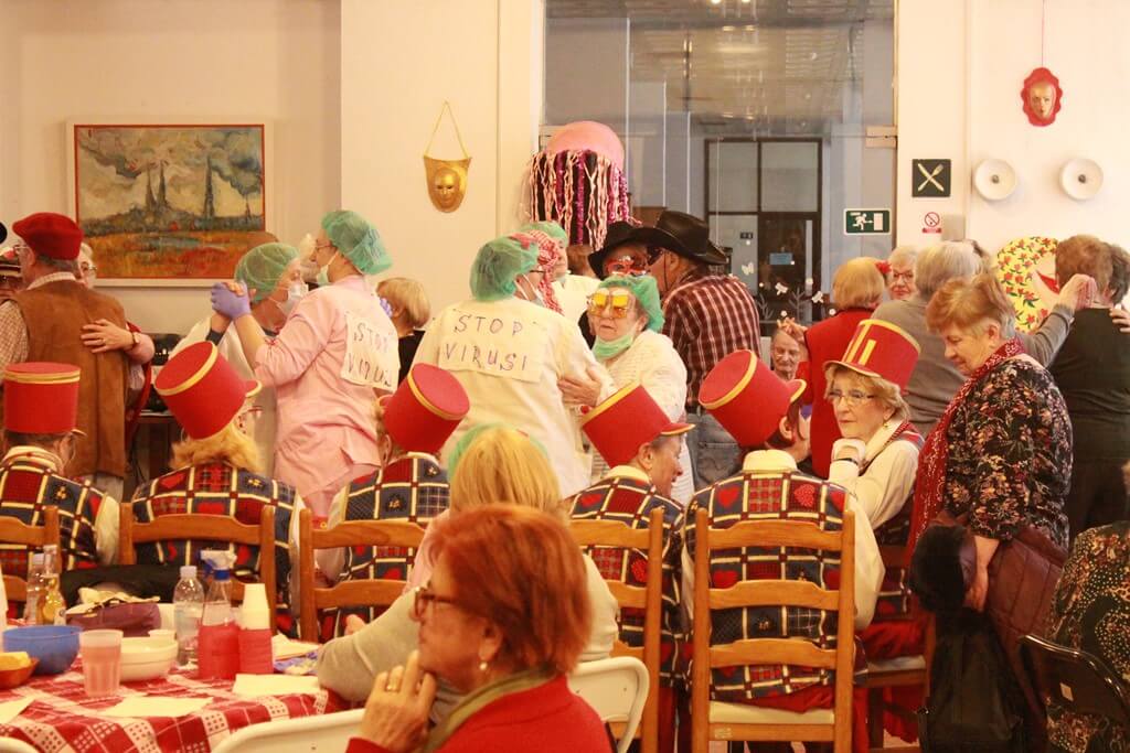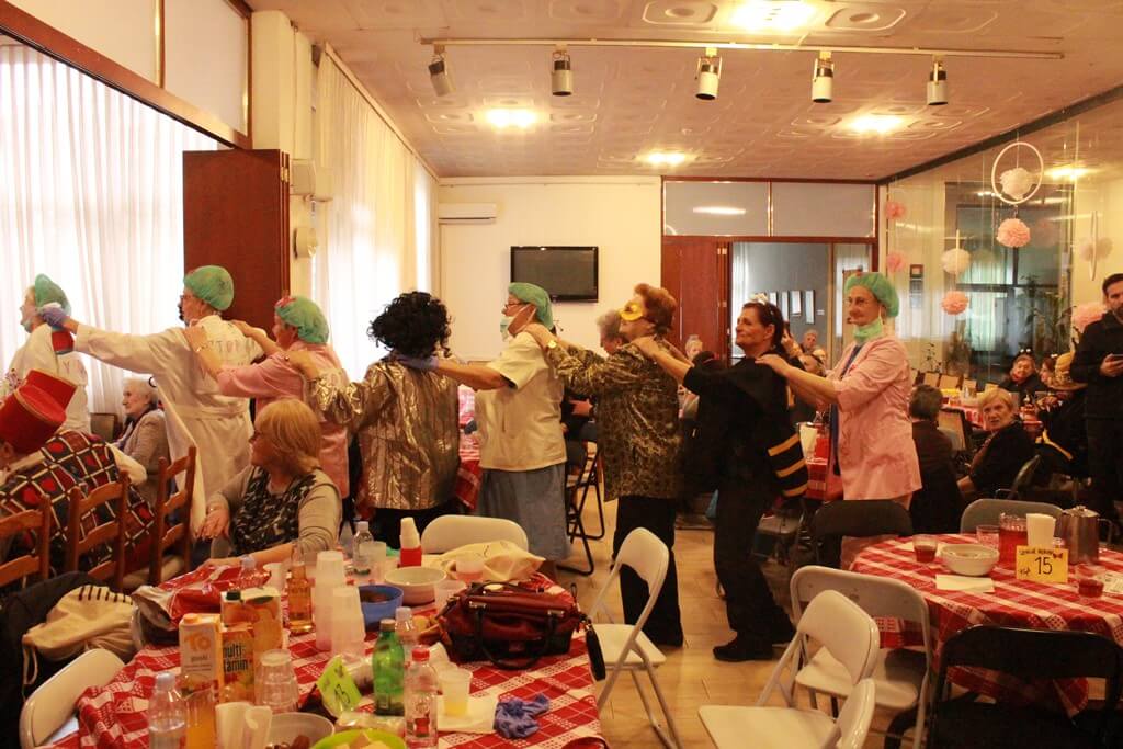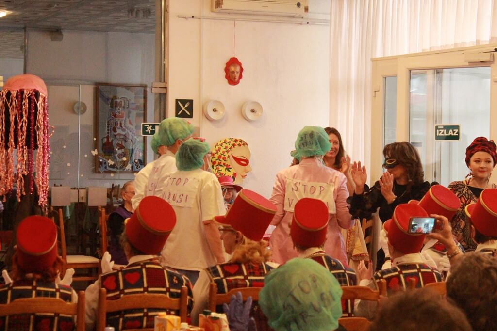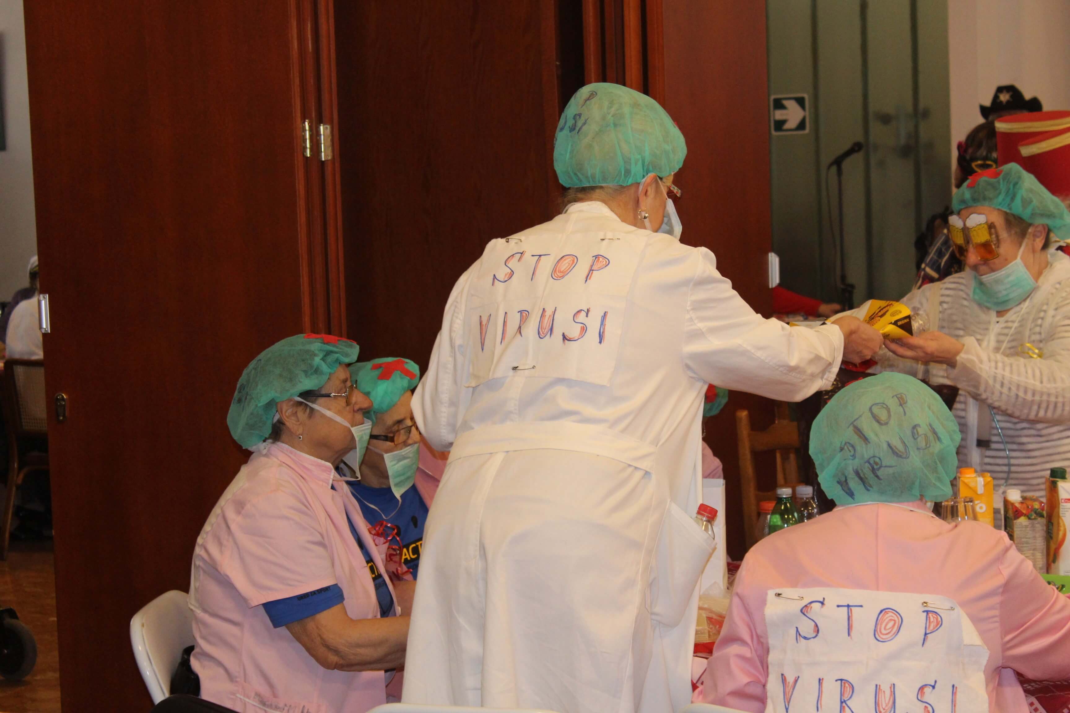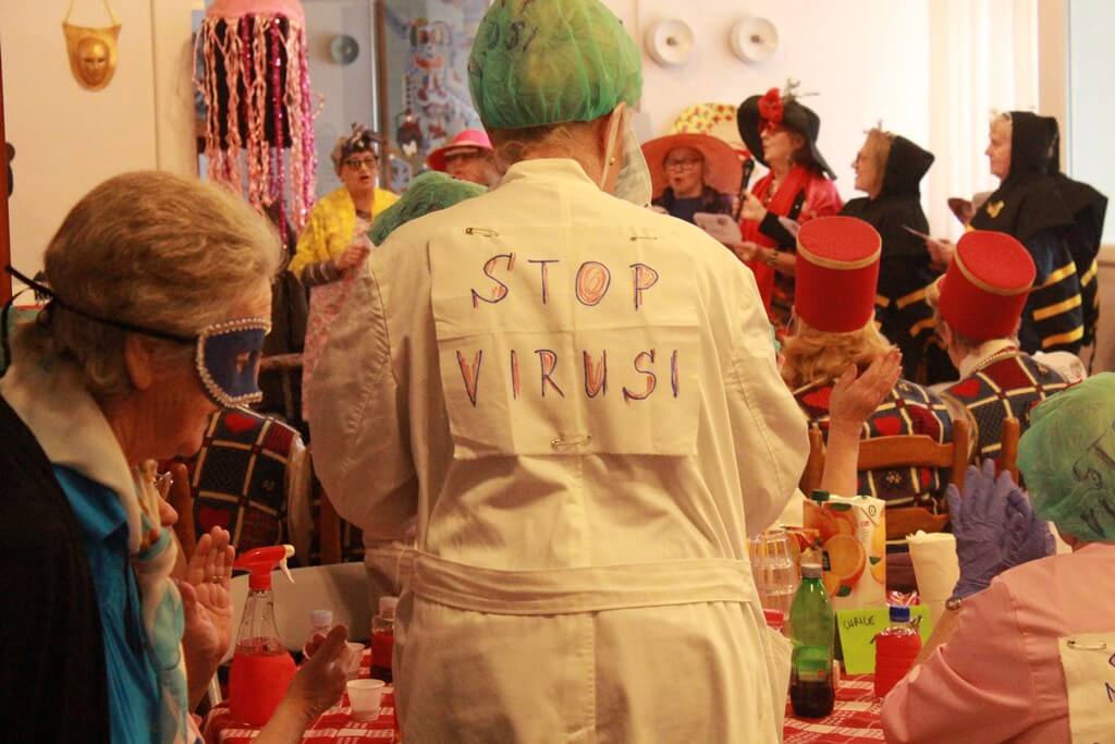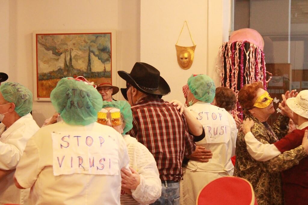 “Odlično je, lijepo se uz plesnjak zabavljamo”, kaže nam jedna umirovljenica koja se s ekipom umirovljenica maskirala u medicinske sestre, a na uniformama im stoji jasna poruka koronavirusu – STOP VIRUSI.