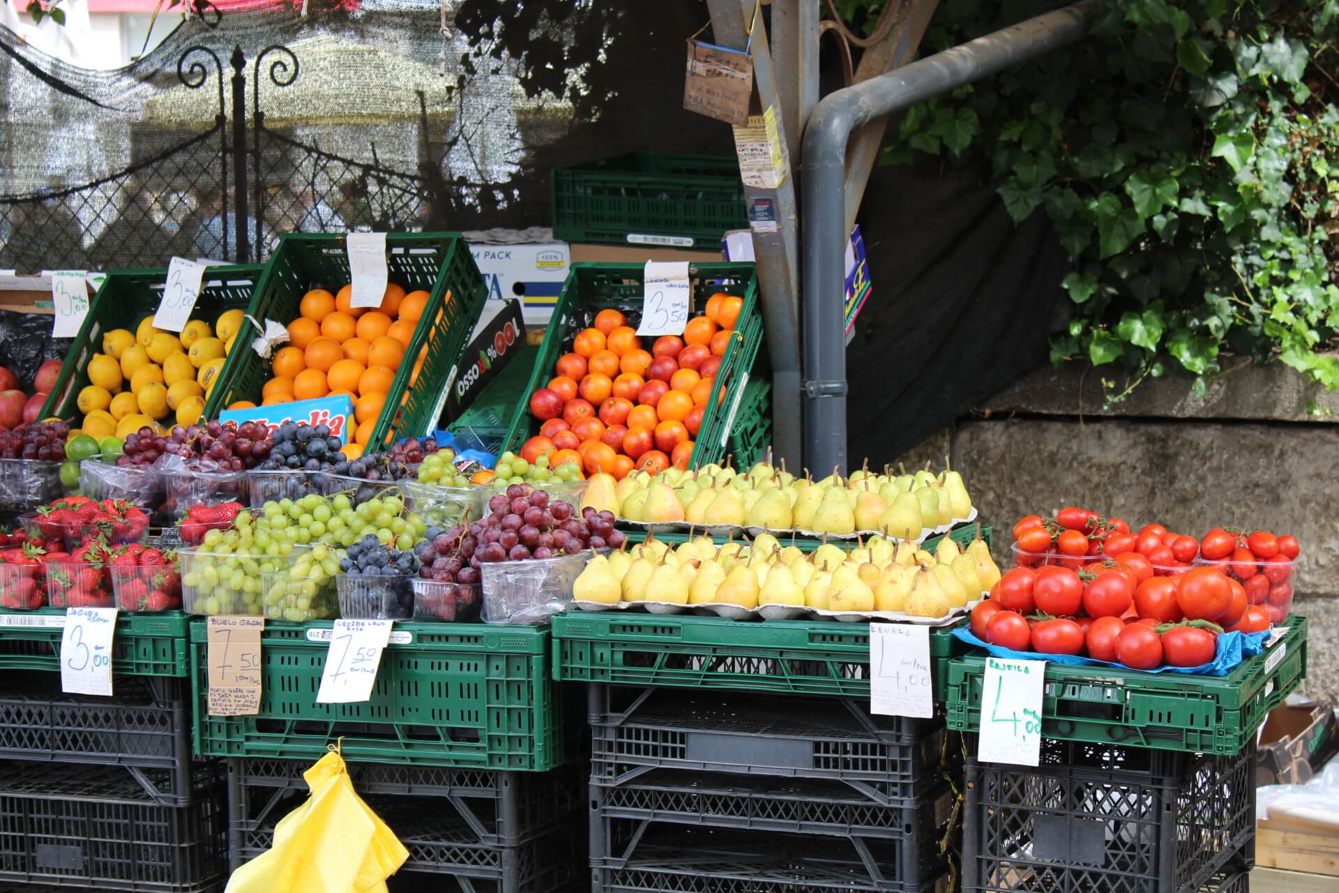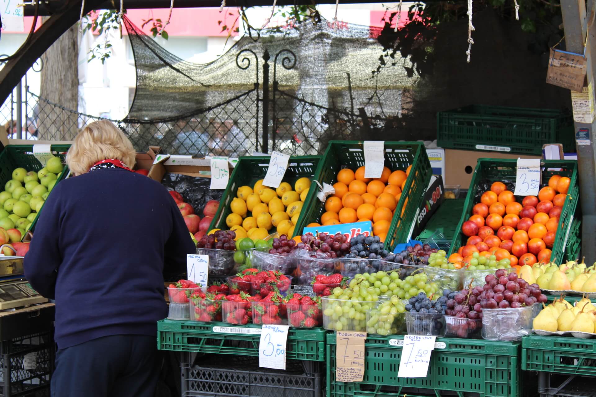 Cijene voća i povrća u velikim trgovačkim lancima uvijek su povoljnije od onih na tržnicama, no ne može se reći da je kvaliteta ista ili slabija na tržnicama jer je riječ uglavnom o kvalitetnijim i domaćim namirnicama. S obzirom na to da smo puljsku tržnicu obišli u prvoj polovici travnja, ponuda je ponajprije ovisila o godišnjem dobu. Ne samo da se nude izvrsni domaći proizvodi i začinsko bilje, već se ondje prodaje limun, naranča, rotkvica, cvjetača, krumpir, celer, mrkva i još niz drugog voća i povrća.