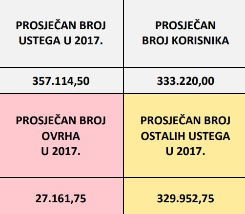 Međutim, izmjenama Ovršnog zakona u kolovozu 2017. iznimno se dopušta ovrha na stalnim novčanim primanjima koja se isplaćuju preko banaka, zbog namirenja po osnovi zakonskog uzdržavanja, naknade štete zbog narušenog zdravlja ili smanjenja, odnosno gubitka radne sposobnosti i naknade štete po osnovi izgubljenog uzdržavanja zbog smrti davatelja uzdržavanja, što pak može utjecati na blagi porast ukupnih ovrha u Zavodu.