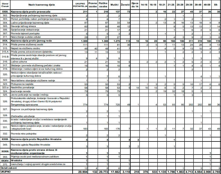 Što se tiče sveukupnog broja kaznenih djela koje su napravili oni s 59 ili više godina, radi se o brojci od 2.755 osoba. Popis kaznenih djela po godinama možete vidjeti u galeriji ispod.