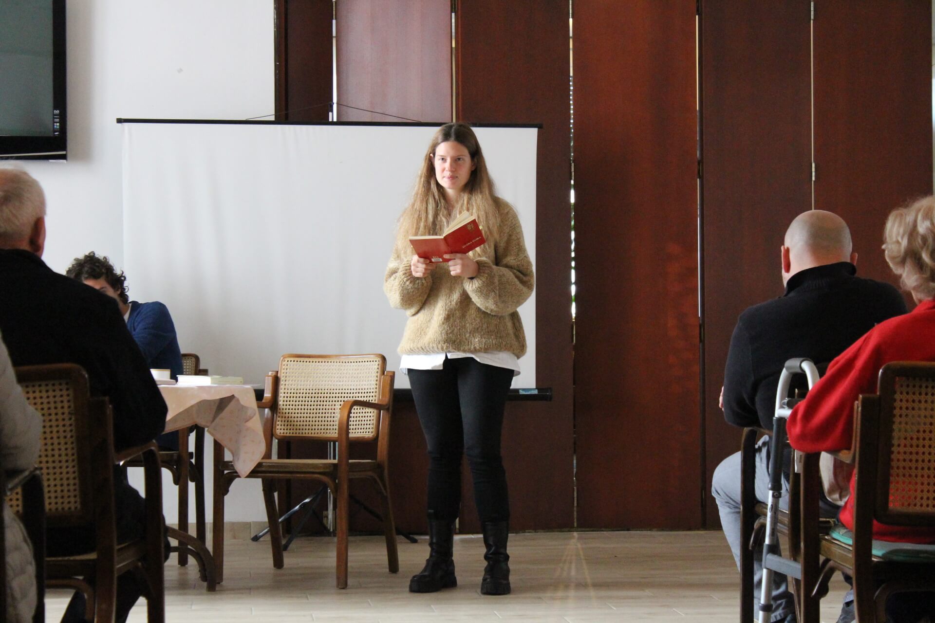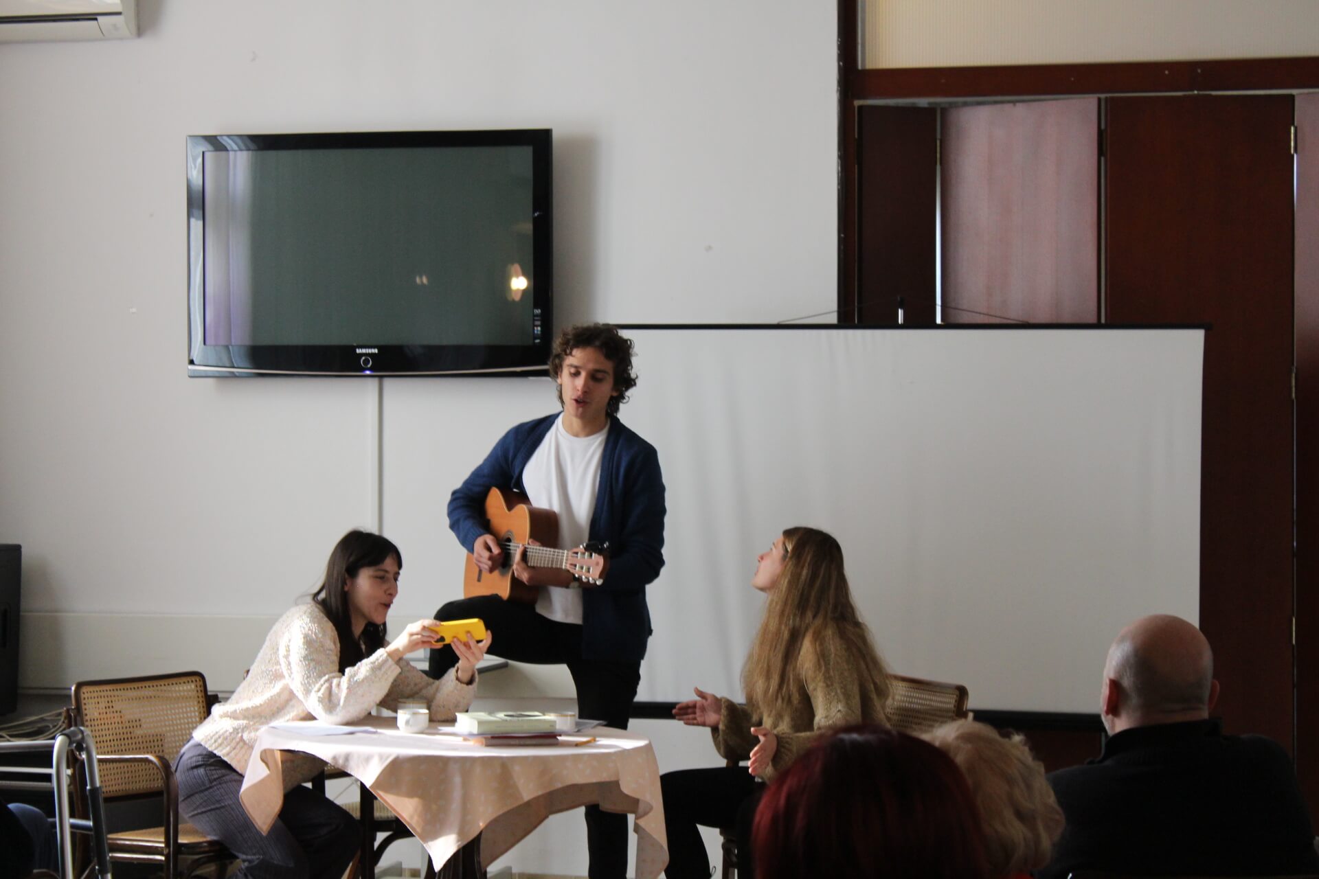 Ovu prosinačku akciju otvorila su tri člana Udruge studenata Akademije dramske umjetnosti f420, Angela Stipić, Lav Novosel i Lucija Nera Đurić čitanjem poezije. Nakon toga je Lav Novosel donio gitaru i pjesma se počela oriti Domom za starije Maksimir, a na listi pjesama pronašle su se dobro znani božićni hitovi, ali i pjesma ‘Lutka za bal’ Parnog Valjka te ‘Dobra stara vremena’ Novih Fosila. Presretni korisnici pridružili su im se i podržali ih svojim glasovima i pljeskom, a pojedini su odlučili iskoristiti ovu priliku i fotografirati s poznatim glumicama, Anom Begić Tahiri i Olgom Pakalović kojima se pridružio kolega Nikša Butijer.