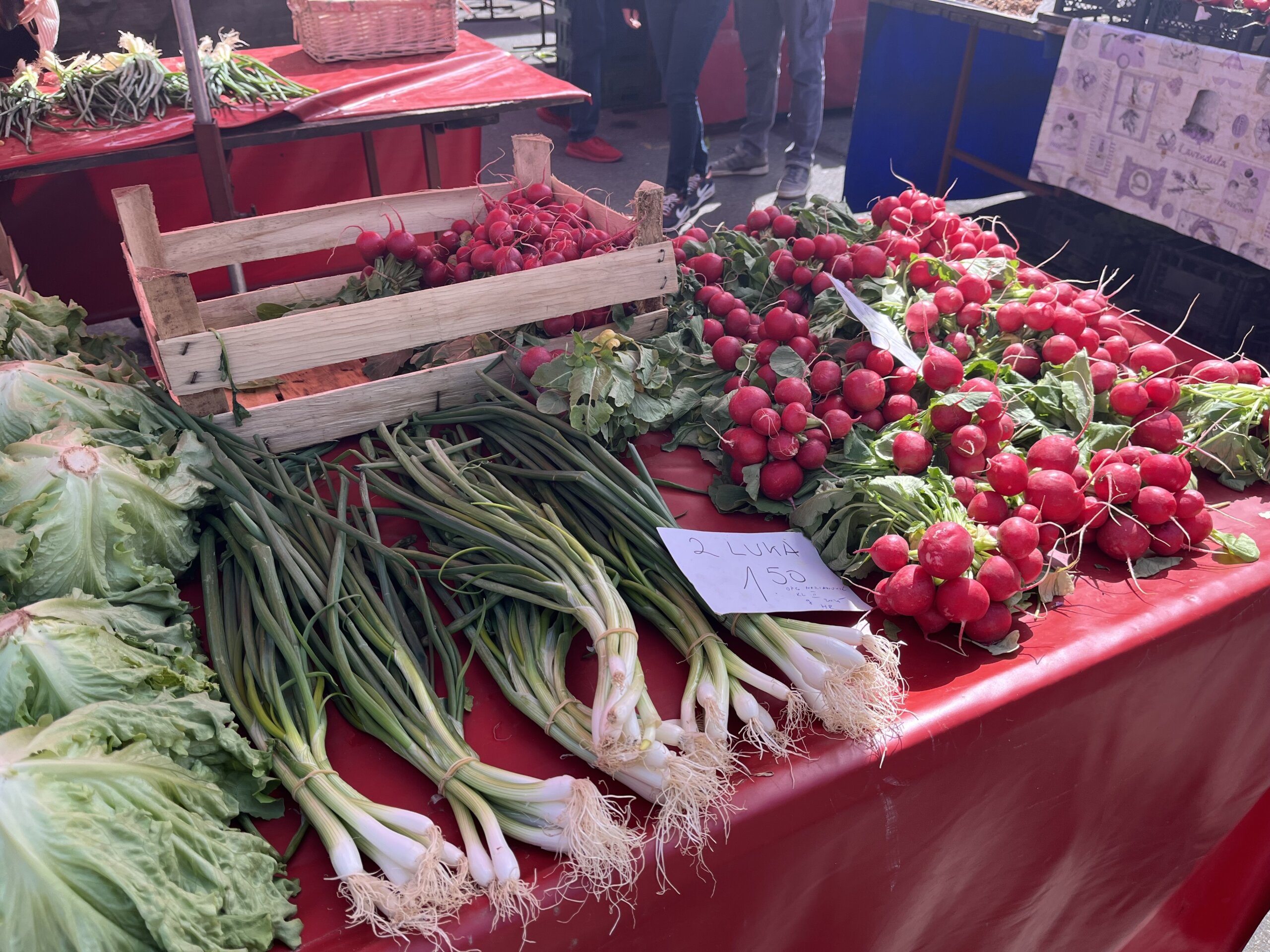 Prodavačica na Dolcu kazala nam je da je cijena luka i rotkvice jedan euro. Dodala je kako ima jako puno salate i da je komad također jedan euro, dok inače prodaje kilogram salate po tri eura. Na drugom mjestu se svežanj mladog luka i rotkvice također prodaju po jedan euro, dok su dva svežnja rotkvice jedan i pol euro.