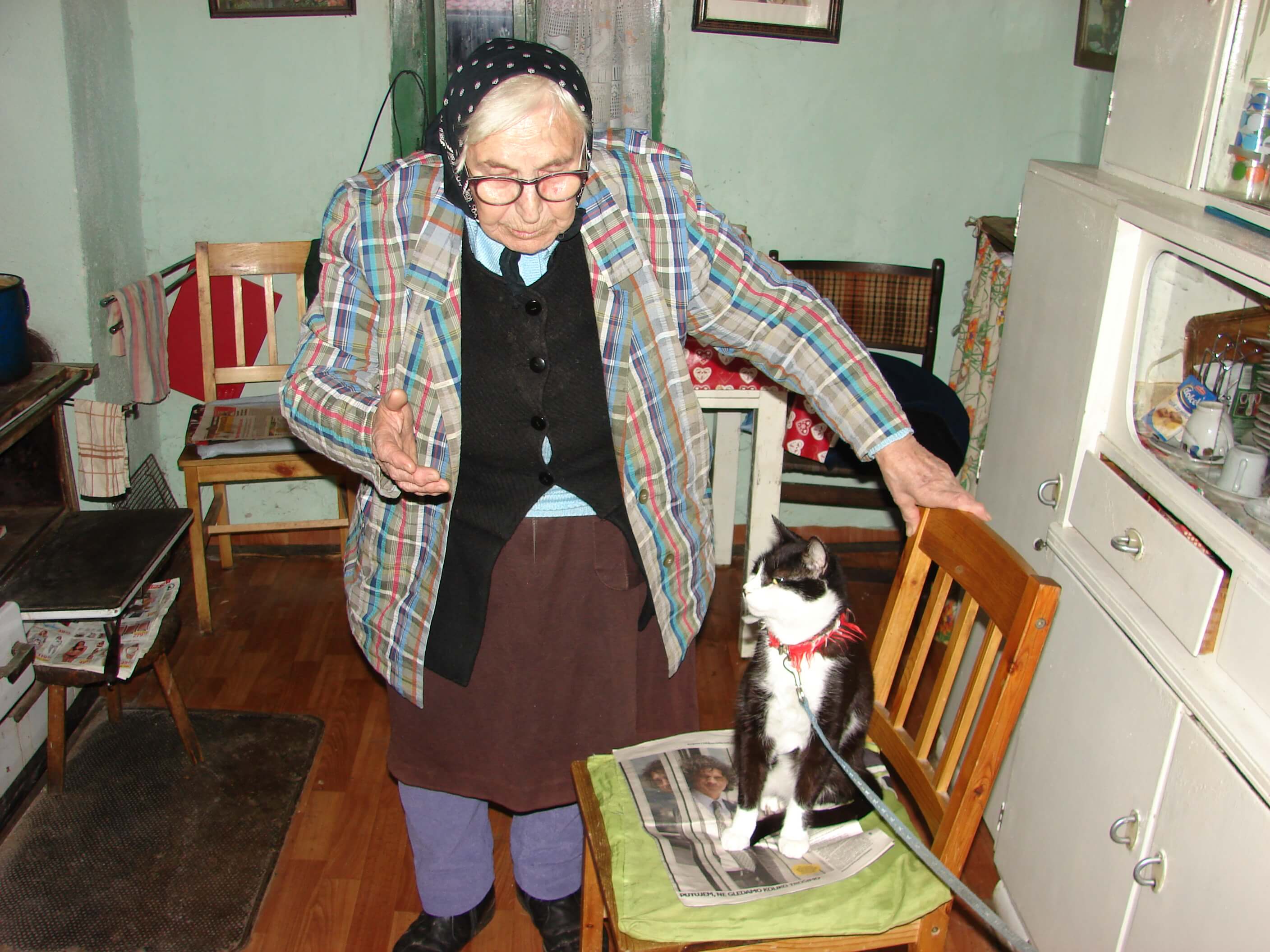 Rano ujutro stižemo s gerontodomaćicom Đurđicom Dužić čiji je zadatak bio sat vremena provesti u čišćenju kuće. Prostranim dvorištem usred usnula sela i strmim drvenim stepeništem ulazimo u njihov više nego skromni dom, sačinjen od dvije malene sobice i kuhinje. Kupaonicu nemaju. Dobrodošlicu nam prvo poželi desetak mačaka koje baka Kata unatoč neimaštini hrani iz puke ljubavi. Jedan se izdvaja od ostalih sjedeći na stolcu zavezana vrata s povocem. Kasnije doznajemo da je uzrok tome što joj je povjeren na čuvanje pa da ne pobjegne. Pred nas stavlja sve što ima, pripremajući brižno kavu na starinskoj peći. Jedva stoji, jedva se kreće, želi pomoći gerontodomaćici u spremanju, no zamolimo je da u miru sjedne i ispriča nam svoju priču, što objeručke prihvati.