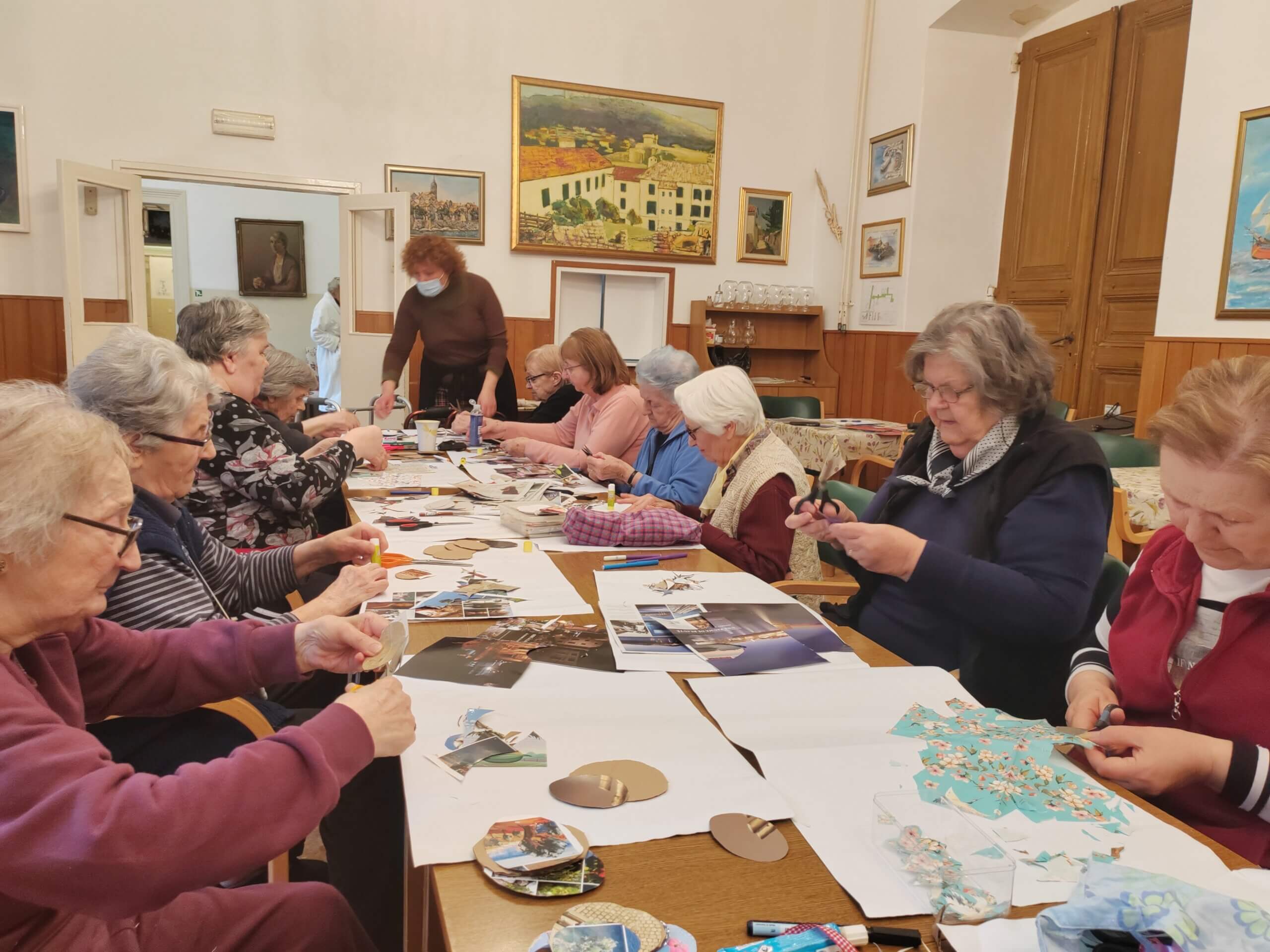 Jednako tako postoje i gastro radionice na kojima se izrađuju različita jela i prenose stari recepti, a koji mogu biti vezani uz tradicionalne blagdane. Tu su i izložbe koje se nekada dogode spontano, kako nam je objasnila Cvjetković. Ipak, najviše umirovljenika ima na kreativnim radionicama i to u prvom redu na radionicama patchworka. Radi se o sklapanju manjih krpica u veće uporabne predmete poput slika, stolnjaka ili popluna, a ovo je i primjer timskog rada kada se potiče socijalno uključivanje.