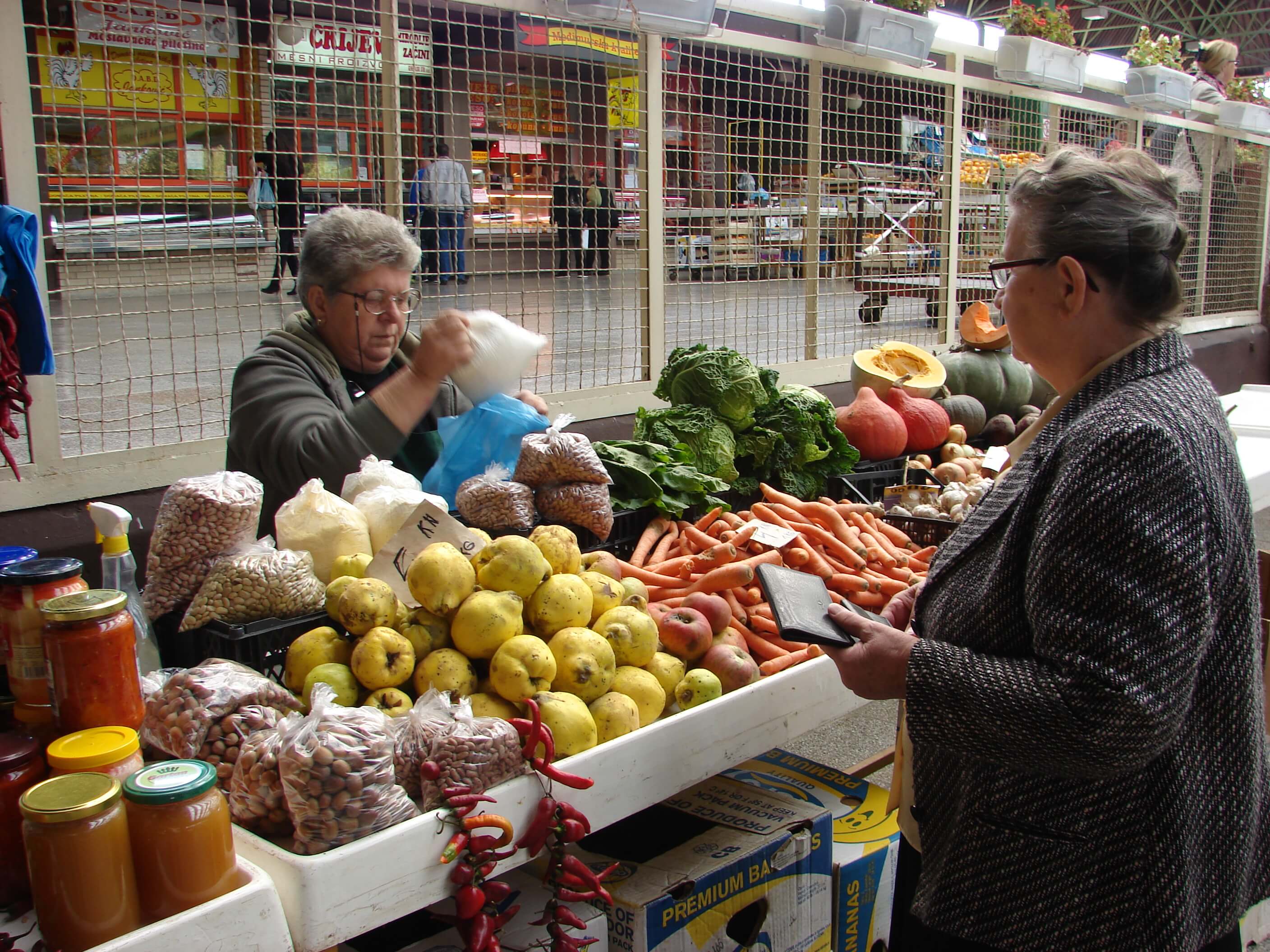 “Glad i sila ne pitaju pa se svi snalazimo kako umijemo. Suprugu i meni ovo je dodatan izvor zarade, no on iziskuje puno truda i napora. Na dvije lokacije imamo ral voćnjaka i oko 400 četvornih metara vrta koji održavam na način da na malom polju stalno zasađujem novo povrće kada staro prođe pa nemam preveliku površinu za obrađivati. Teže poslove na sebe preuzima suprug, ali tek kada je sav posao gotov slijedi ostalo – sve to dopremiti na tržnicu i stajati na štandu čitav dan bez obzira na vremenske uvijete. Briga o samoj proizvodnji meni je zadovoljstvo i ponosna sam što mogu reći da je sve ekološki, bez umjetnih dodataka. I s cijenama sam konkurentna pa zato imam stalne mušterije, ali u Sisku je takva situacija da je ljudima i par kuna puno. Nije to kao kada dođete na zagrebački Dolac pa se za cijenu često ni ne pita” – priča Radojka Zdjelar pri kraju svoje radne smjene. Prekida je tek pokoji kupac s nekoliko kovanica za potrebnu mu sitnicu. Za najam dva štanda i skladišta svakog mjeseca izdvoji 650 kuna pa joj ne ostaje neka zarada, ali najveću vrijednost za nju zapravo ima – rad.