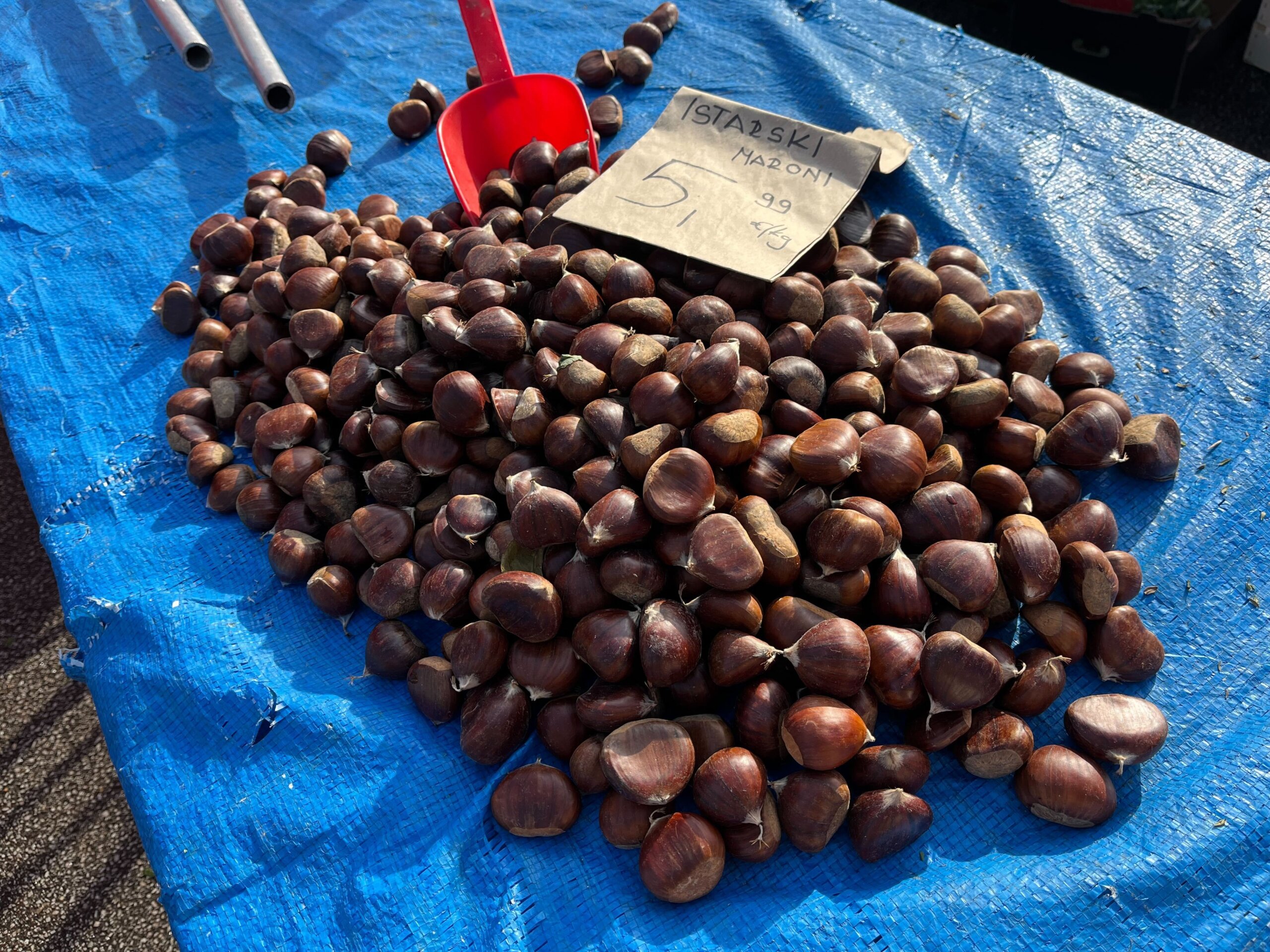 Umirovljenik Štef na tržnici Kvatrić prodaje kilu kestena za tri eura. Osim kestena, prodaje i kestenov te bagremov med jer uzgaja pčele. Prodaja ide slabo, kako je rekao, stariji nemaju novca jer imaju male mirovine. Kesteni sada ipak ‘idu’ više nego med jer im je sezona, a meda ima uvijek. Iako je u mirovini, Štef voli prodavati na tržnici.