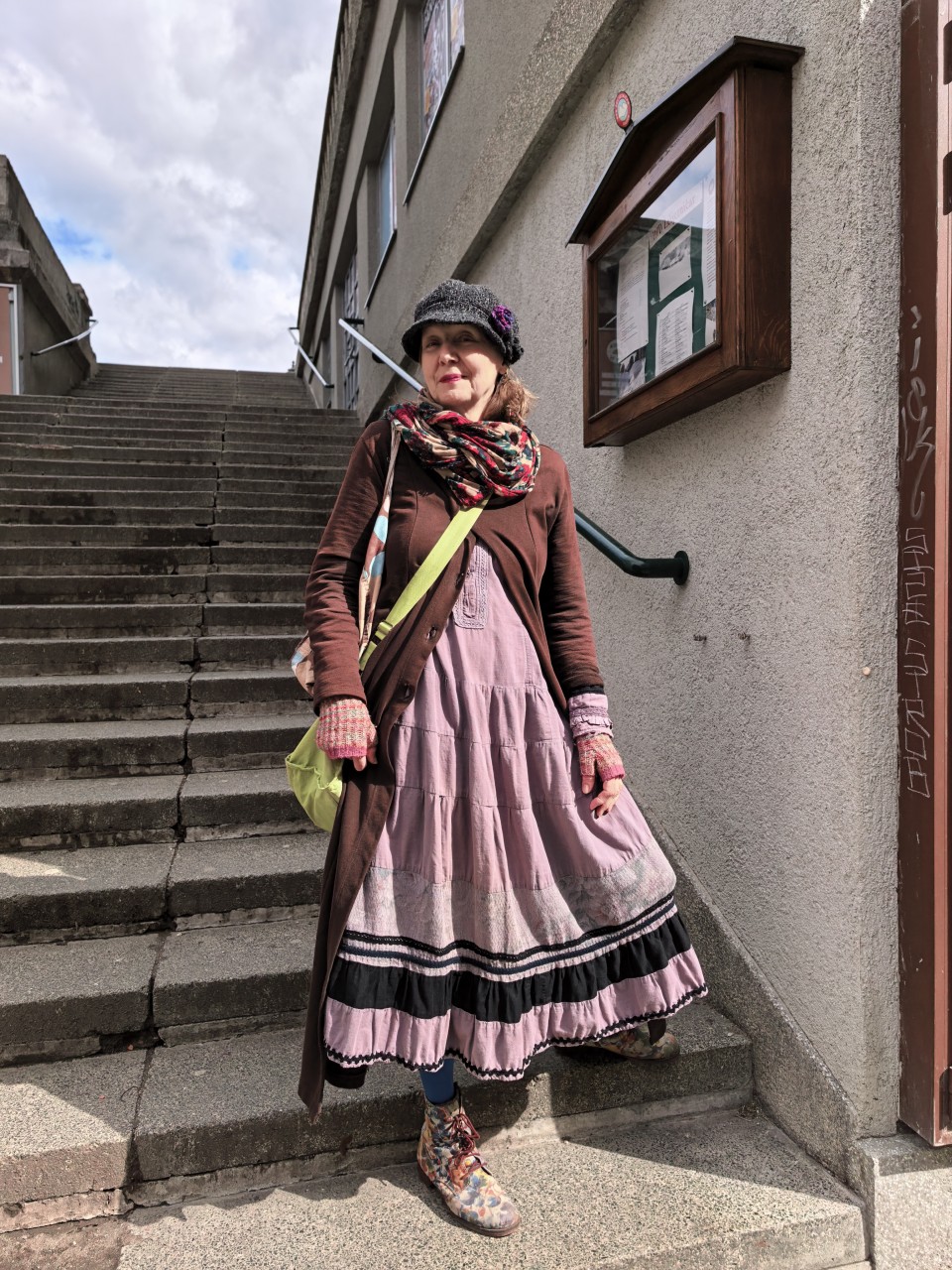 Umirovljenica Mirjana smatra da se svatko treba odijevati tako da se dobro osjeća. Svoj starinski stil personalizira modnim dodacima koje sama štrika.
