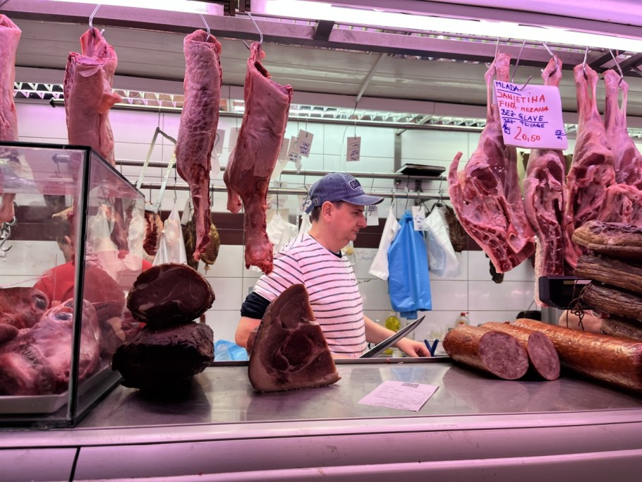 Još jedan prodavač na Dolcu rekao nam je da prodaja ove godine ide loše. Sve je poskupjelo, ljudi nemaju dovoljno sredstava, ističe i kaže da je kod njih skuplje i do 20 posto. Građani dolaze kupiti šunke i janjetinu najviše. Janjetina je 20 eura po kilogramu, šunka 14 eura po kilogramu, kazao nam je prodavač u još jednoj mesnici na Dolcu.