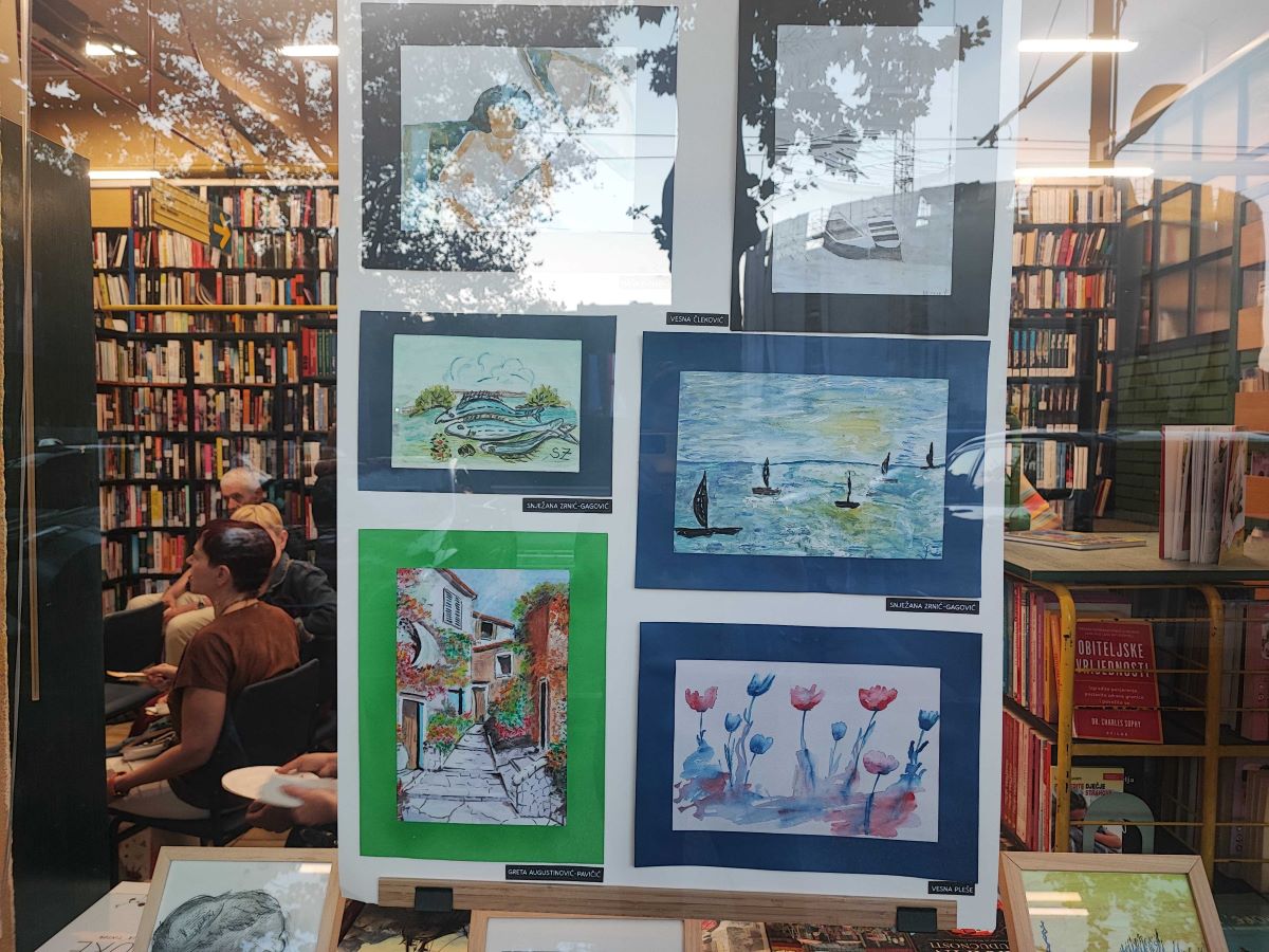 – Nakana je naučiti teoriju i da nam se pokaže u praksi. Tko je malo nadaren i htio je to cijeli život, dođe tu i nauči. Najvažnija je ta pozitivna energija, mi se šalimo cijelo vrijeme uz njega, čovjek je jako školovan, svašta zna i uvijek je to sat i pol smijeha. Prije ove radionice mi se međusobno nismo poznavale, ali sad redovito idemo na kave, družimo se, idemo zajedno na vježbanje i tako. Uglavnom, nešto jako pozitivno i lijepo, a takav je i rezultat kao što vidite. Ovo je prva izložba. Malo sam pogledala po internetu pa lijevo desno, tu u blizini ima par galerija pa sam ustanovila da uopće nije loše da baš ovdje imamo izložbu. Zamolila sam našeg učitelja da bih ja izložbu, a on je rekao samo ‘ma da’ i onda su neke gospođe rekle ‘ja svoje slike ne dam’, a neke su pristale, kazala nam je Vesna i pola u šali, a pola ozbiljno dodala da je iduća izložba njezina samostalna.